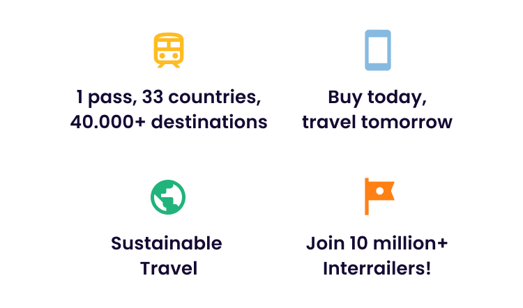- Flexible Fahrten mit den meisten Zügen in 33 Ländern, einfach durch Vorzeigen deines Passes (für einige Highspeed- und Nachtzüge musst du zusätzlich einen Sitzplatz reservieren).