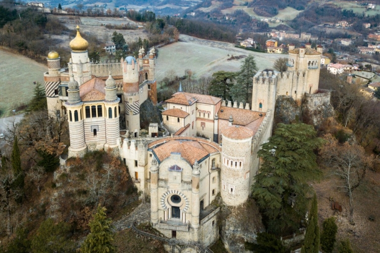 Ein Reiseziel, das mir einfällt, ist Rocchetta Mattei in den Apenninen zwischen Bologna und Pistoia, das auch als ungewöhnlichstes Schloss der Welt beschrieben wird. Erst vor Kurzem wurde dieser bezaubernde Ort, wo es viel Esoterisches zu entdecken gibt, der Öffentlichkeit wieder zugänglich gemacht. Ich war letzten Sommer dort. Ich glaube, man kommt dort mit dem Regionalzug hin, der in Riola hält (vom Bahnhof aus kann man zum Schloss laufen). Unterwegs gibt es auch noch ein paar andere nette Orte, die man besuchen kann.