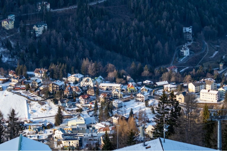 Du hast genug von der Stadt und nichts gegen einen Tapetenwechsel? Das Bergdorf Semmering ist mit dem Zug nur gut eine Stunde entfernt, wobei du unterwegs durch eine grandiose, schneebedeckte Landschaft über Viadukte und durch Tunnel reist.