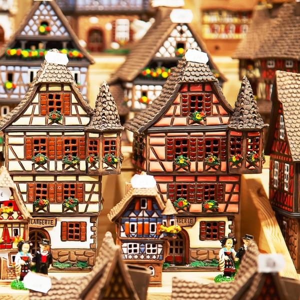 Winzige Versionen traditioneller elsässischer Häuser sind für Souvenirliebhaber bei Les Irréductibles Petits Producteurs d'Alsace erhältlich.