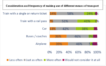 Eurail’s survey on the impact of Covid-19 on travel shows that people look for added flexibility and are more likely to travel by train over other transportation modes.