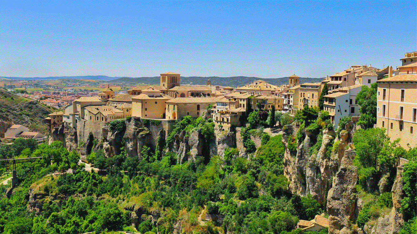 Along the way, the train makes a stop in Cuenca; if time allows, experience the mountain city’s historic streets and admire its famous “hanging houses” over the Huecar River.