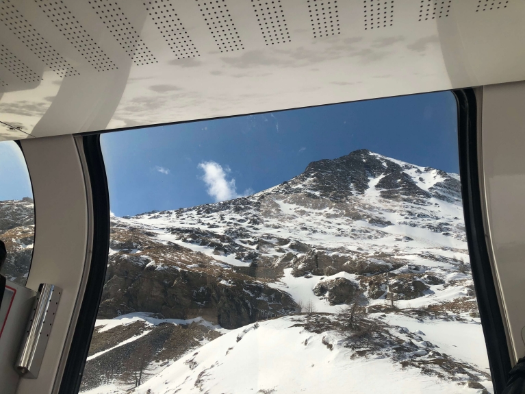 The Bernina Express' panoramic cars allow travellers to take in unforgettable views of the Swiss Alps.