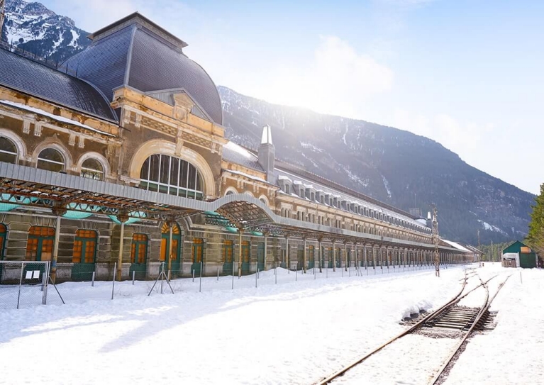 20. Jaca to Canfranc (Spain): Explore the peaks of the Spanish Pyrenees on this train journey that culminates at a historic train station now operating as a luxury hotel.