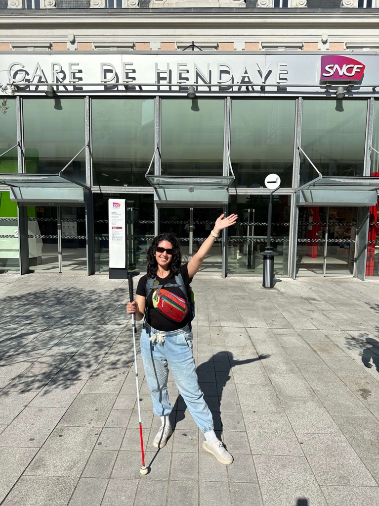 Catarina Rivera strikes a pose outside the train station in Hendaye, France (Catarina Rivera)