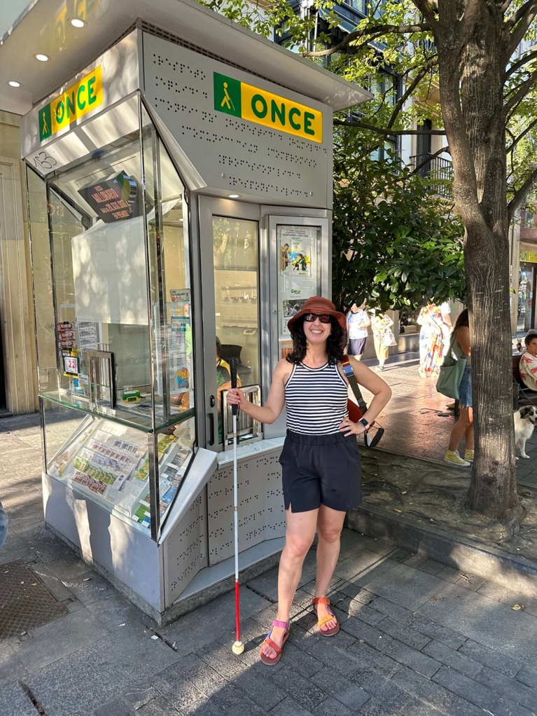 Catarina Rivera smiles outside a Once kiosk in Spain (Catarina Rivera)