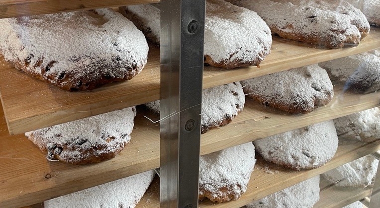 During our visit to the Striezelmarkt, Anett took us to a workshop set up to highlight traditional crafts from the Ore Mountains. Next door to the workshop is the Striezelmarkt’s Showroom Bakery, where Dresden bakers demonstrate how they create stollen, a sweet bread with a history dating back to the 1300s.