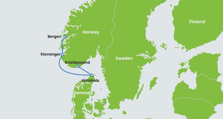 - Hirtshals (Denmark) – Stavanger (Norway) – Bergen (Norway)