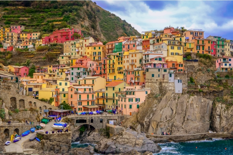 Enjoy an aperitifo in Manarola, watching the sun set across the rainbow houses.