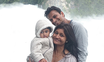 "My hidden gems were the moments in my trip when we found real relaxation, happiness, and a feeling of contentedness. This picture is taken at the Rhine Falls in Switzerland. While travelling with our daughter made it more difficult to climb to the top, this moment made it all worth it."