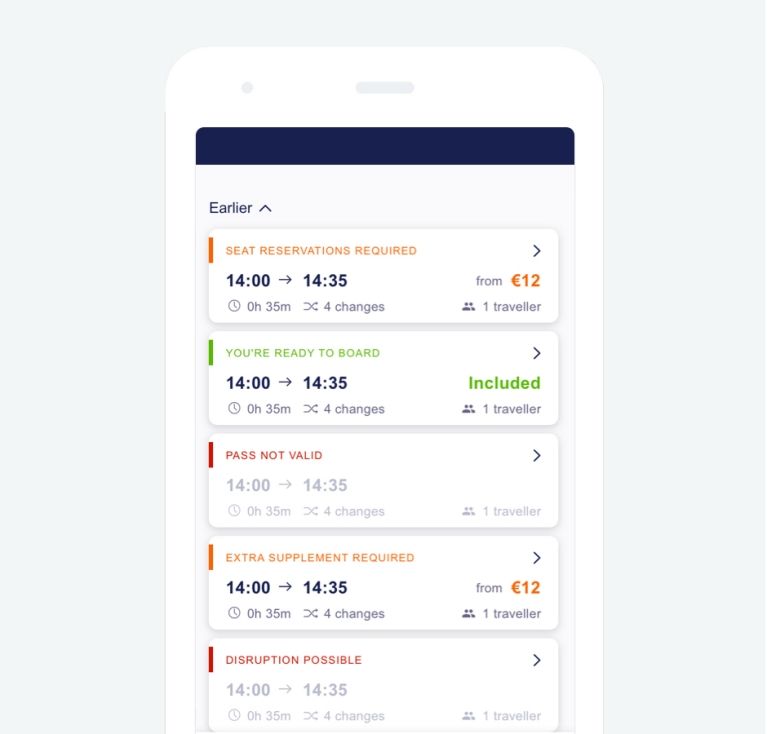Si no tienes un Pase, comprueba si quedan asientos directamente con la empresa ferroviaria. ¿Están agotados? Prueba con las rutas sin reservas.