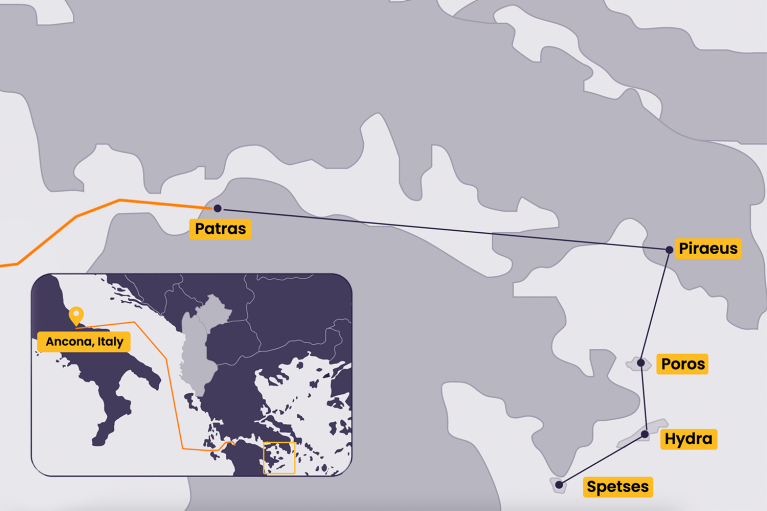- Traslado desde el puerto internacional de Patras al puerto nacional de El Pireo (incluido en el pase de las islas griegas de 6 días)