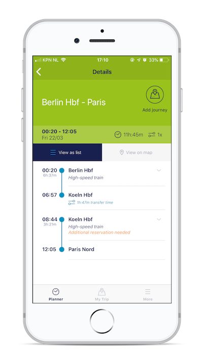 Tanto si estás en el sofá planificando tu próximo viaje como si te encuentras en la estación buscando el siguiente tren, tendrás Europa al alcance de la mano con la aplicación Rail Planner. Se trata de un planificador de viajes y un horario de bolsillo, y además funciona sin conexión. Descárgala ahora para iPhone (iOS 16.0 y versiones posteriores) y Android (6.0 y versiones posteriores).