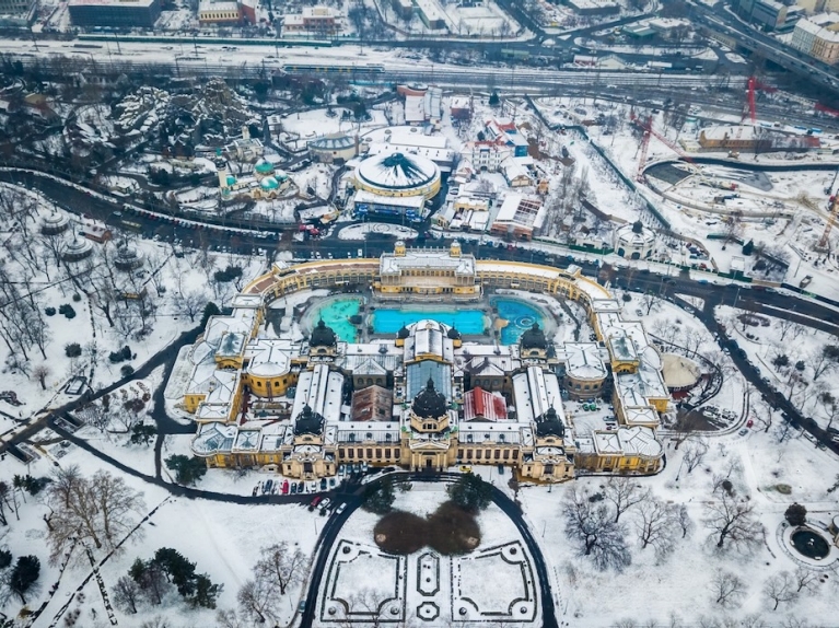 Las heladas y las nevadas son impredecibles, pero siempre puedes confiar en Budapest para calentar tu invierno gracias a sus baños termales. Hay mucho para elegir, pero el palaciego y amarillo complejo de spa Baños Széchenyi es, por mucho, el más impresionante.