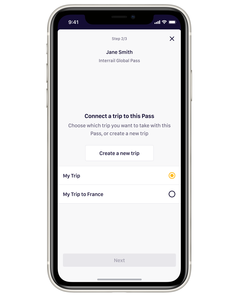 Dopodiché, collega un viaggio al Pass. In questo modo potrai tenere traccia di tutti i viaggi che fai.