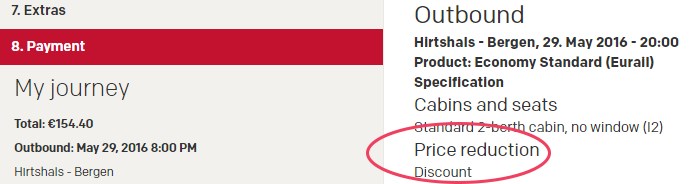 - Per ottenere lo sconto per i titolari di Interrail Pass, scegli "Ho un codice promozionale" nel modulo di prenotazione. Puoi trovare i codici promozionali e ulteriori informazioni sulla pagina dedicata a Fjord Line di Interrail.