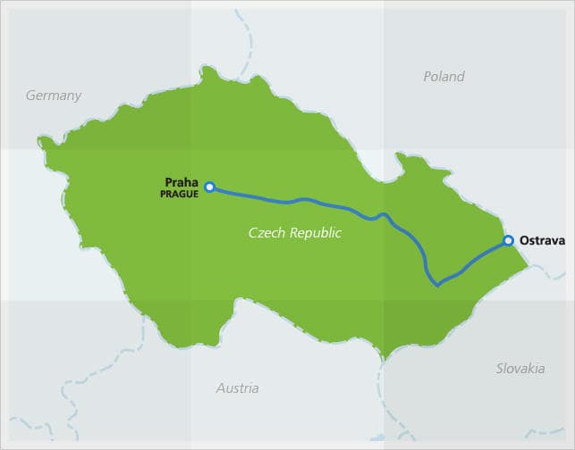 La principale linea ferroviaria della Repubblica Ceca è quella che collega Praga a Ostrava. Il SuperCity è il treno più veloce su questo itinerario, e fa servizio ogni giorno da Praga attraverso Pardubice e Olomouc, fino a Ostrava. Durante i weekend sono disponibili servizi aggiuntivi da Cieszyn a Praga e da Bohumín a Františkovy Lázne o Plzen. Gli orari dei treni SuperCity sono programmati per permettere di usufruire delle coincidenze con altri treni della flotta ceca quali i treni regionali Osobní o i treni IC, e andare a esplorare le cittadine e i paesi della campagna.
