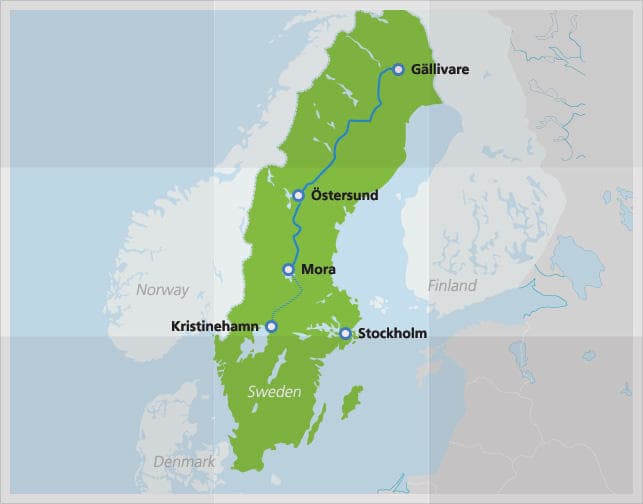 De Inlandsbanan is een toeristische treinroute in Zweden die 1300 km lang is en begint in Kristinehamn in het zuiden en eindigt in Gällivare in het noorden. De spoorweg is geopend voor toeristisch verkeer met dagelijkse ritten van medio juni tot eind augustus. Op andere momenten van het jaar is hij alleen geopend voor gecharterde arrangementen. Het traject Kristinehamn - Mora is geopend tijdens het hoogseizoen. Op dit gedeelte reis je zowel met de trein als met de bus.